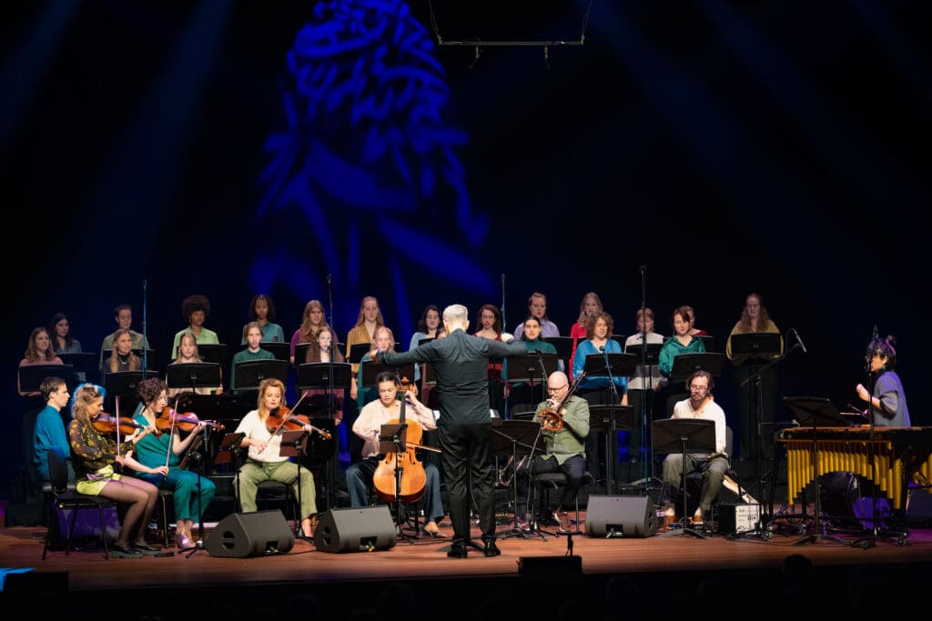 Samen met het Nationaal Vrouwen Jeugdkoor, pianist Pascal Meyer, gitarist Aart Strootman en percussionist Yung-Tuan Ku brachten we de gelaagde klanken van Dessner, Shaw, Strootman en Tsoupaki naar de oppervlakte. De strakke ritmes en pakkende melodieën zijn opgenomen door de NTR voor het programma Avondconcert, nu terug te luisteren via de website van NPO Klassiek.